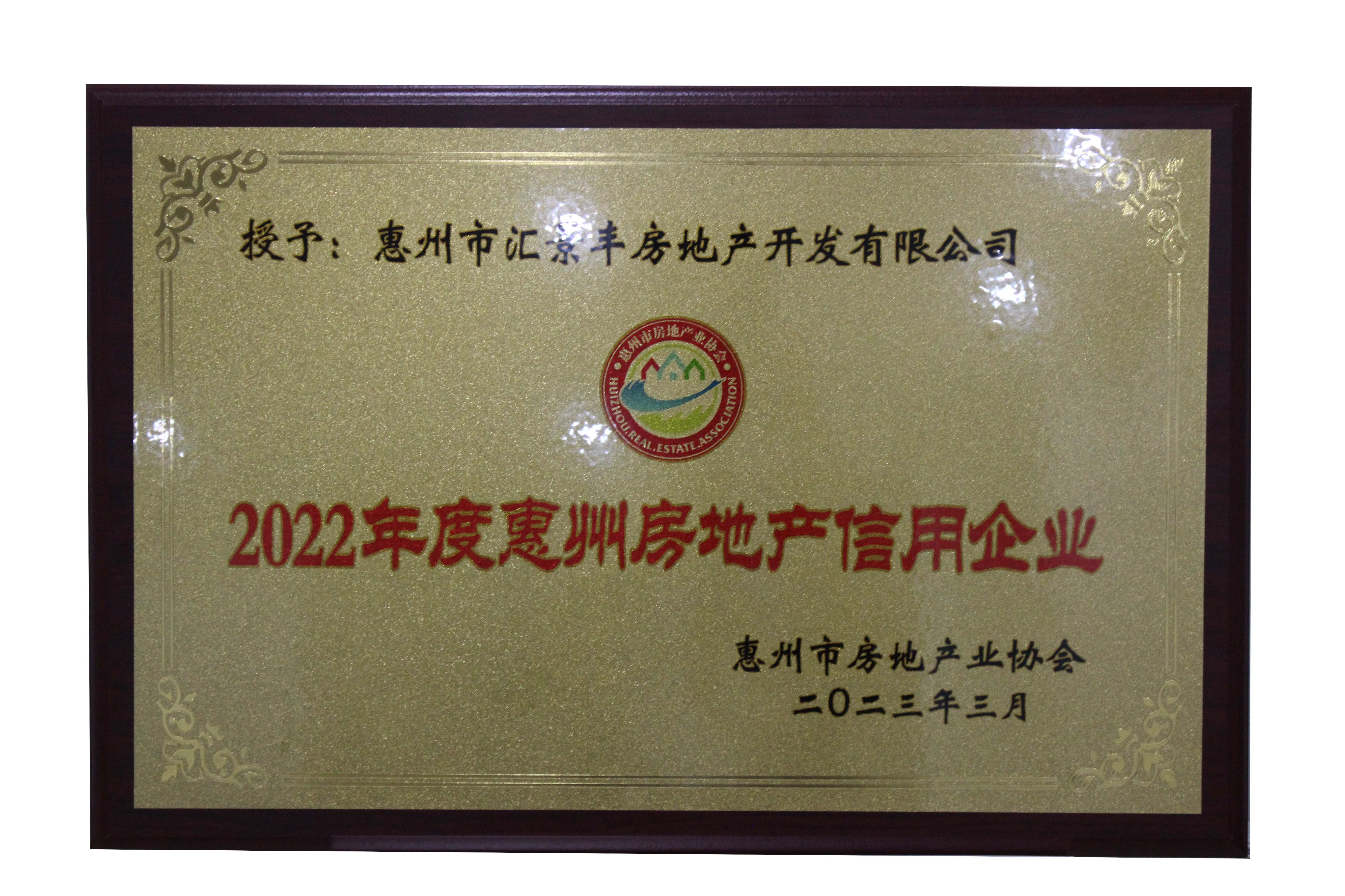 2022年度惠州房地產(chǎn)信用企業(yè)