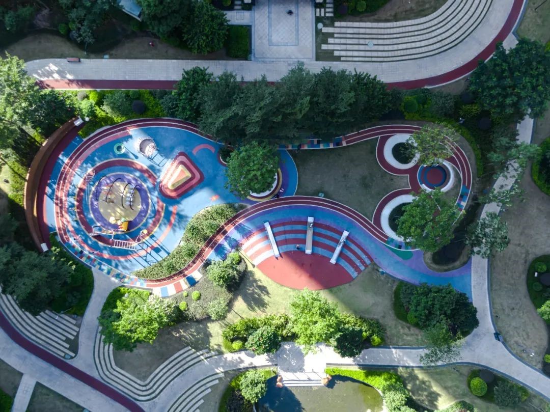 沿跑道環(huán)線打造無(wú)線全覆蓋的全年齡段活動(dòng)場(chǎng)地,如兒童樂(lè)園、青年球場(chǎng)、老年健身器材以及休憩長(zhǎng)廊一應(yīng)俱全。形成“一環(huán)一帶,兩軸景觀”的六大活動(dòng)區(qū)。