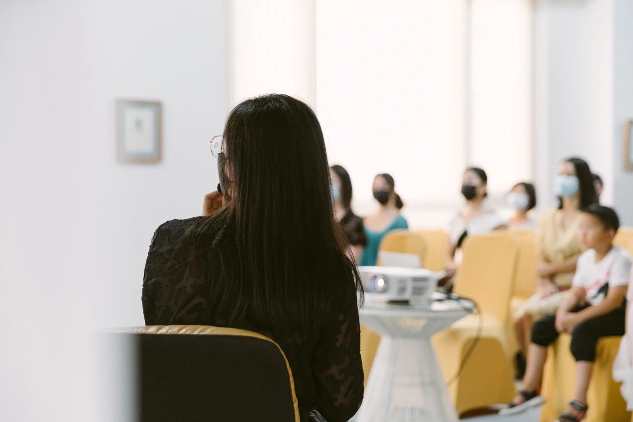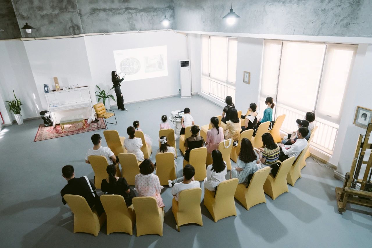 結(jié)束參觀展覽后,藝術(shù)家劉紫茵通過講座的形式向居民解釋和傳達(dá)了項(xiàng)目「一念之間」的理念,并分享了一些當(dāng)代藝術(shù)的概念、議題和理論。首先,藝術(shù)家介紹了項(xiàng)目「一念之間」包含的一系列行為:從行走中發(fā)現(xiàn)開始,然后思考和命名藝術(shù)品并且給他們粘貼上展簽到最后拍攝記錄。