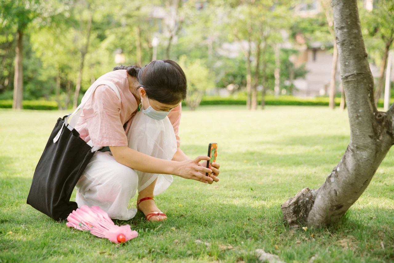居民唐女士在拍攝自己眼中的藝術(shù)