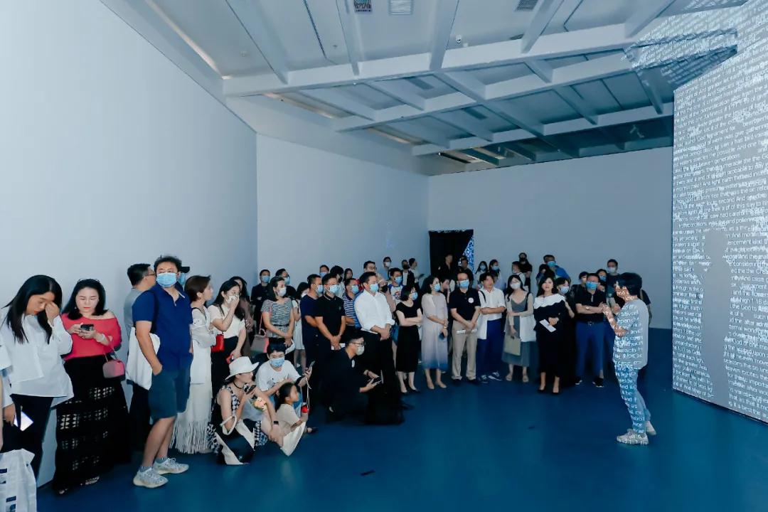 在策展人導(dǎo)覽環(huán)節(jié),王澈帶領(lǐng)嘉賓穿行在藝術(shù)作品、展廳空間中,從策展理念出發(fā)闡釋整個(gè)展覽的結(jié)構(gòu)與每個(gè)作品的意義。策展人表示,九位藝術(shù)家分別從確立人的價(jià)值、熵化的處境、女性的心理、文化與工業(yè)的并置、身體的形態(tài)、個(gè)體與環(huán)境的共生性、城市與自然、對(duì)交流的探索、公共情感的反思上進(jìn)行的思考和創(chuàng)作,為展覽提供了非常好的內(nèi)容,很好地貼合了“身體視覺”這一主題。